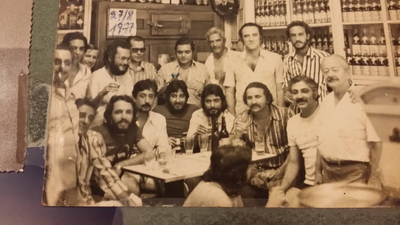 Foto de um grupo de frequentadores do antigo Bar e Mercearia São Jorge, dos irmãos Almir e Aland Ferreira. O estabelecimento ficava na Av. 7 de Setembro, centro da cidade, e era muito frequentado. Fechou nos anos 80.