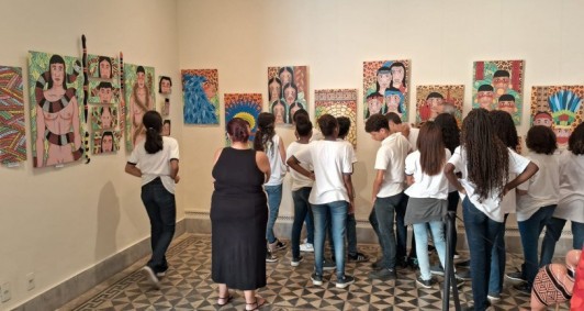 Continua aberta à visitação, até o próximo domingo (29), no Museu Histórico de Campos, a exposição “Povos Originários, o Brasil que Somos”. Até agora, mais de 10 escolas já passaram pelo local e se aprofundaram um pouco mais nas lendas e histórias contadas na mostra, que exibe 44 telas com tamanhos variados, 14 objetos escultóricos e duas releituras do manto tupinambá, confeccionados pelo Instrutor de Artes e Ofícios da Secretaria de Educação, Ciência e Tecnologia (Seduct), Edeison Fernandes.