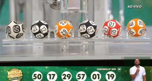 Veja os números sorteados: 01 - 17 - 19 - 29 - 50 - 57