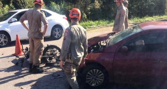 Um acidente entre uma moto e um carro deixou dois homens feridos, na manhã desta sexta-feira (8), na BR 356, em Campos. Não há informações sobre como aconteceu a colisão.