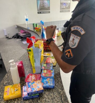 A suspeita foi encontrada dormindo dentro do carro, no quintal da residência, com uma mochila cheia de produtos. Entre os itens tinham biscoitos, sabão, gelatinas, fósforo, esponja de aço, duas latas de cerveja e outros.