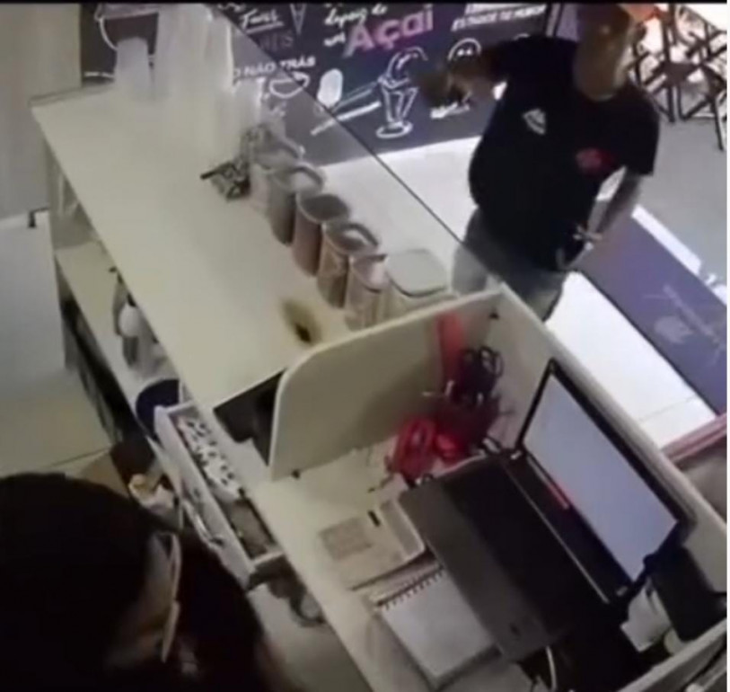 Câmeras de segurança de uma Açaíteria no Parque Califórnia, em Campos, registraram o momento em que um criminoso invadiu o local durante um assalto no fim da tarde dessa sexta-feira (8). Com uma arma apontada para a atendente do comércio, que fica próximo à rua Saldanha Marinho, ele exigiu que a vítima entregasse o dinheiro do caixa e o celular dela. Um outra pessoa que estava no estabelecimento também teria ficado sem seu smartphone.