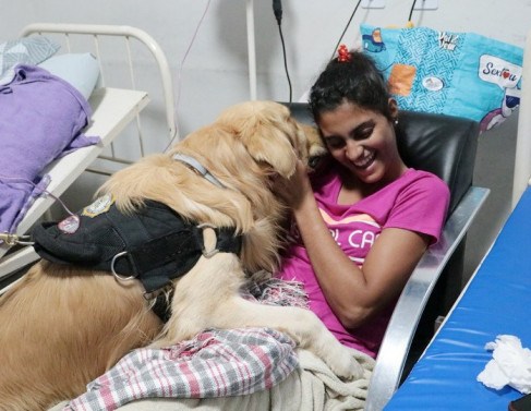 A gerente de enfermagem Cíntia Franco relata como as visitas do cão Zeus são benéficas para a recuperação e melhora do bem-estar dos pacientes internados. “Esses pacientes que se encontram aqui internados na UCP (Unidades de Cuidados Prolongados) têm uma permanência de longos cuidados, então, esse contato com o Zeus ajuda na diminuição da ansiedade, do estresse, melhora no condicionamento emocional, tanto com os acompanhantes como também com os profissionais da saúde”, finalizou a enfermeira.
