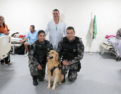 Zeus é um cão da raça Golden Retriever de 2 anos e 9 meses, treinado pelo Grupamento de Operações com Cães (GOC) para realizar atividade de show dog, em que dá saltos, rola, obedece a comandos para sentar e buscar objetos, além de ser preparado para socialização com pacientes. Além de Zeus, o GOC conta com outros cinco cães treinados para detecção através do faro.