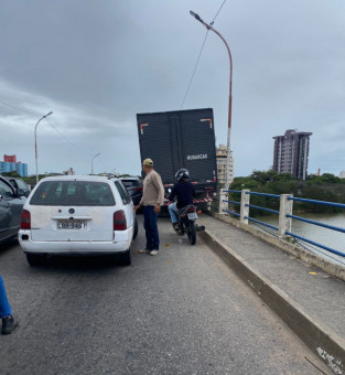 Um caminhão de mudanças e transportes de cargas, quase caiu da Ponte Saturnino de Brito (Lapa), em Campos, na manhã desta terça-feira (5). O veículo se envolveu em um acidente com um carro de passeio e atingiu a mureta da proteção. Ninguém ficou ferido.