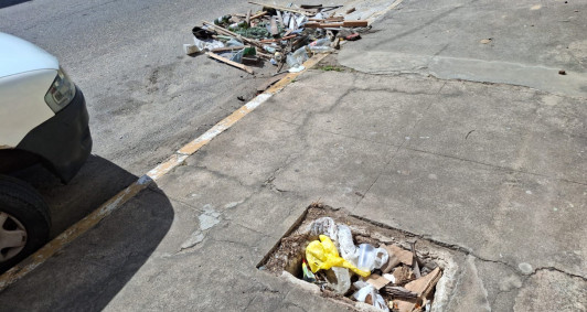 A Rua Comendador José Francisco Sanguedo, no Centro de Campos, continua esburacada e seguiu gerando reclamações nesta terça-feira (22). Além dos buracos no asfalto, bueiro aberto na calçada e lixo foram flagrados e chamam a atenção de quem passa pelo local.