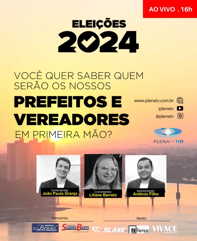 A Plena TV, do Grupo Folha, se prepara para a cobertura das Eleições 2024. A partir das 16h, com apresentação do jornalista Antônio Filho e comentários da jornalista Liliane Barreto e do advogado João Paulo Granja, o público acompanha a abertura das urnas até o resultado do pleito em Campos e toda a região.