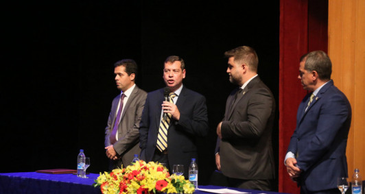 O prefeito de Campos, Wladimir Garotinho (PP), seu vice Frederico Paes (MDB) e os 25 vereadores eleitos em Campos, no pleito de outubro, foram diplomados. A Justiça Eleitoral realizou a cerimônia na noite de segunda-feira (16), no Teatro Municipal Trianon A solenidade foi conduzida pelo juiz da 76ª Zona Eleitoral, Leonardo Cajueiro e contou com a presença do promotor eleitoral Fabiano Rangel Moreira. A Justiça Eleitoral também intimou o vereador reeleito Bruno Pezão (PP) durante o evento, mas não o impediu de receber o diploma.