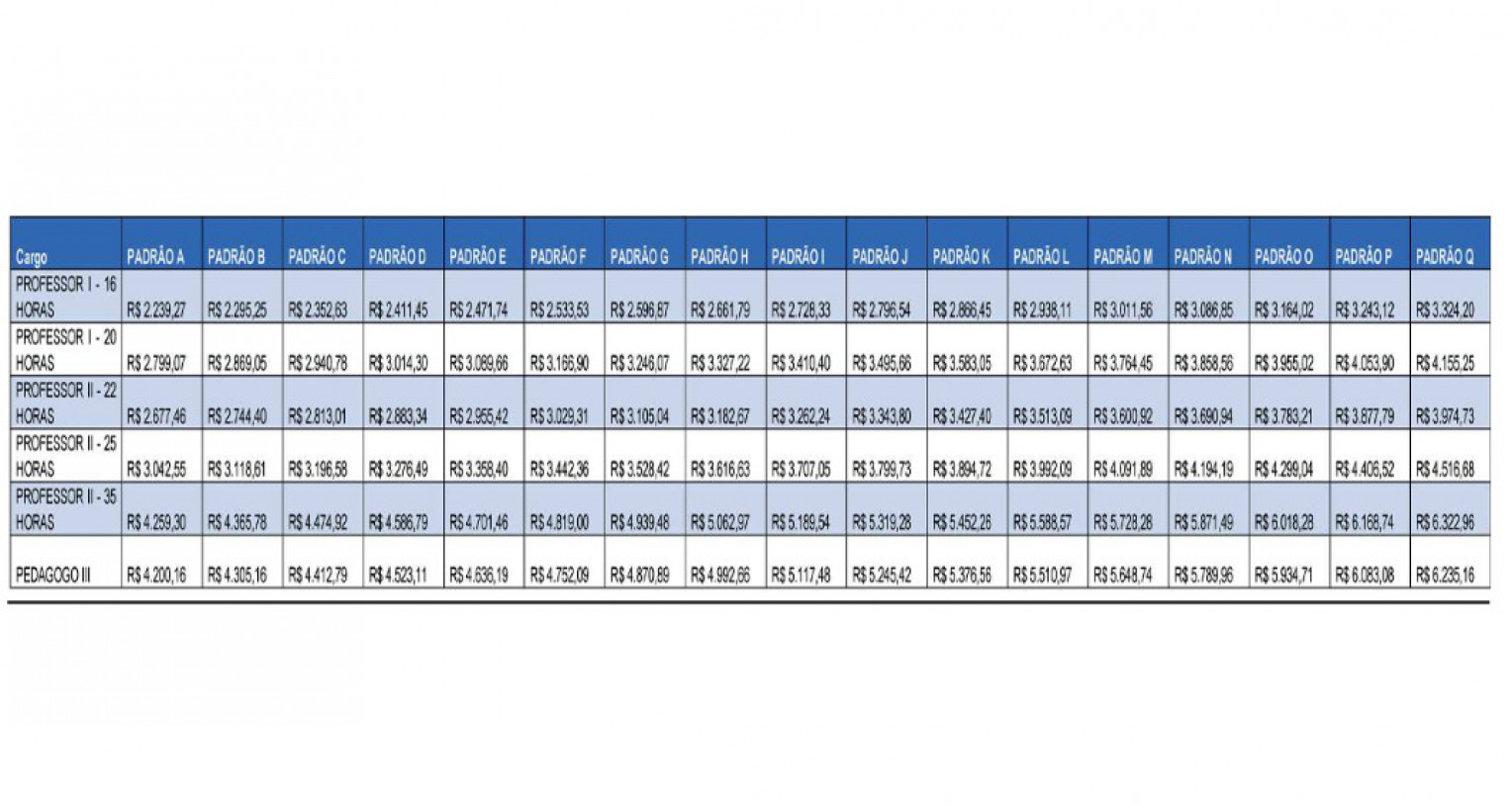 Tabela de vencimentos do magistério