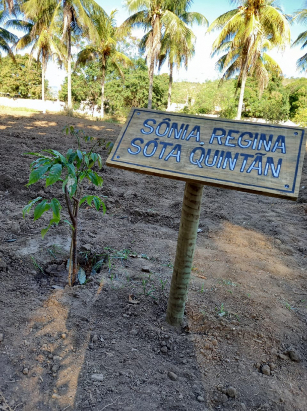 Placa da árvore plantada que leva o nome de Sõnia Sóta
