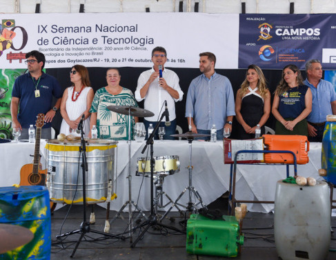 Foi aberta na manhã desta quarta-feira (19), no Jardim São Benedito, a IX Semana Nacional de Ciência e Tecnologia de Campos dos Goytacazes. A abertura solene foi feita pelo prefeito Wladimir Garotinho, acompanhado da primeira-dama, Tassiana Oliveira, e pelo secretário de Educação, Ciência e Tecnologia, Marcelo Feres. A cerimônia teve a apresentação do Grupo ART Lata de São Francisco de Itabapoana, que acompanhou a execução do Hino Nacional. O Hino a Campos teve a participação dos alunos do Ciep Custódio Siqueira, do Calabouço. As atividades prosseguem até sexta-feira (21), das 9h às 16h.