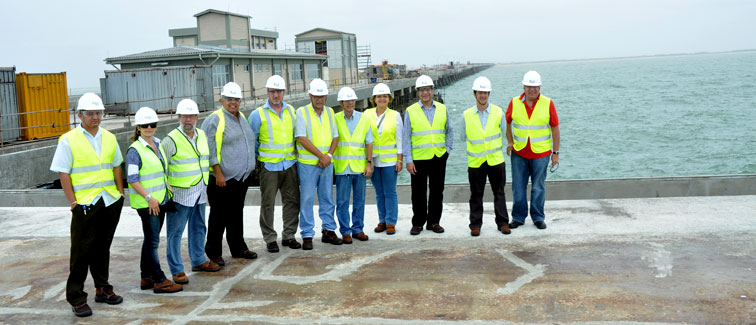O grupo foi recepcionado por uma equipe de profissionais da LLX no Centro de Visitantes do complexo, onde, após um organizado coffe break, pode assistir a vídeos com informações sobre o empreendimento, antes de visitar as obras do porto, com a sua grande ponte que avança 2.6 km mar adentro.