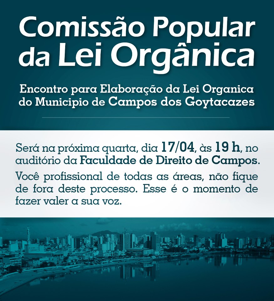 Assim, fica o convite para a 2ª reunião da referida Comissão que ser realizará na Faculdade de Direito de Campos, às 19 horas, na próxima quarta-feira, dia 17.