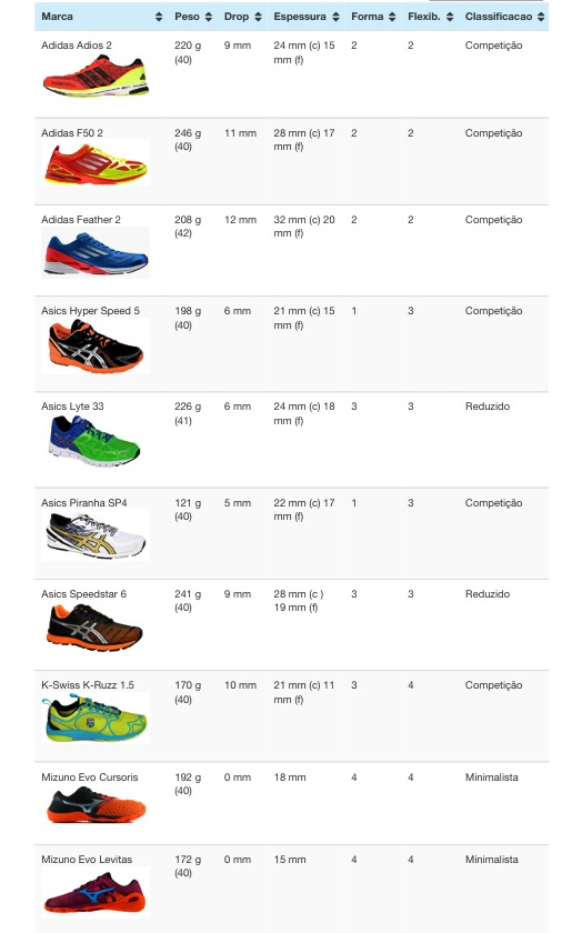 Dicas de tênis e seus respectivos Drops - diferença de altura entre o calcanhar e a frente do tênis - para melhor entender o seus mecanismos. Se é mínimo, médio ou máximo, encaixando dentro da filosofia de cada um. Esta é mais uma informação bem legal do blog Corrida Natural, melhorando e aumentando as informações referentes.