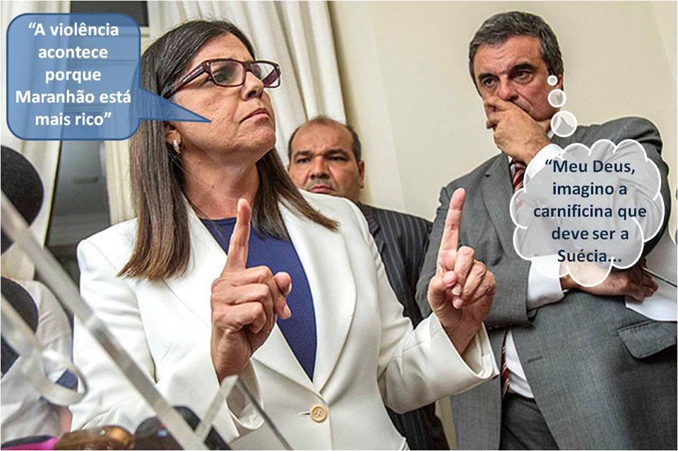 Tem dias que eu sinto vergonha de ser brasileira. A cara queima com o desleixo das nossas autoridades públicas, com o distanciamento destas da realidade da população. Sei que certo não é generalizar, mas, os horrores (me parecem) têm sido banalizados e, o pior, as falas oficiais permanecem nas nuvens. O discurso da governadora Roseana Sarney ao apontar o suposto enriquecimento do estado do Maranhão, como causa do horror, é esquizofrênico, não é inocente. Não tenho dúvida: breve haverá nova explosão popular. Entre tantas selvagerias, espertezas e hipocrisias que ocuparam o noticiário nacional na última semana, a da trágica situação carcerária brasileira, desmascarada com a barbárie em penitenciária maranhense, foi o golpe que faltava na boca do estômago nacional.
