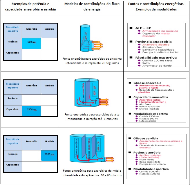 Estes modelos de fluxo de energia (acima) permitem entender quais são as principais fontes energéticas utilizadas em intensidades e distâncias distintas de corrida, de acordo com o substrato energético recrutado.