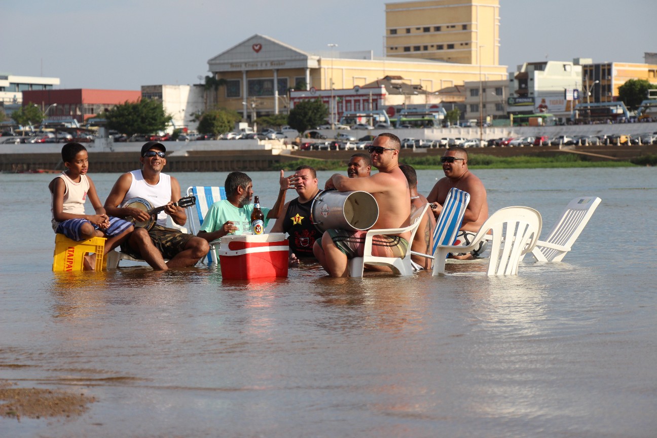 A agonia e a seca do Rio Paraíba do Sul foram registradas nesta semana em belas imagens do repórter fotográfico Rodrigo Silveira, da Folha da Manhã. A primeira foto é de uma roda de pagode em uma mesa fincada em pleno Paraíba, com o Centro de Campos ao fundo. A imagem ganhou as páginas dos jornais Folha da Manhã e O Globo.