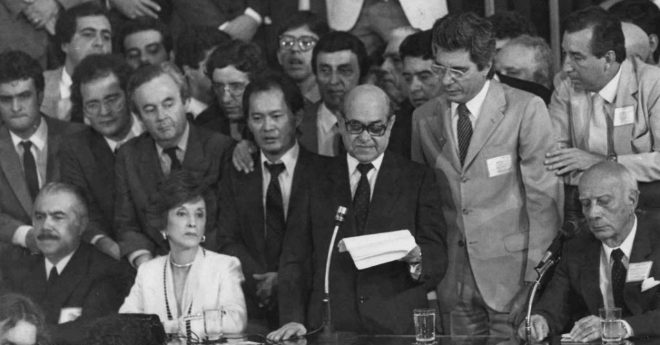 Eleito pelo Colégio Eleitoral com maioria de votos, o presidente Tancredo Neves passou a ser a esperança de todos os brasileirosCelio Azevedo/Senado Federal[/caption]