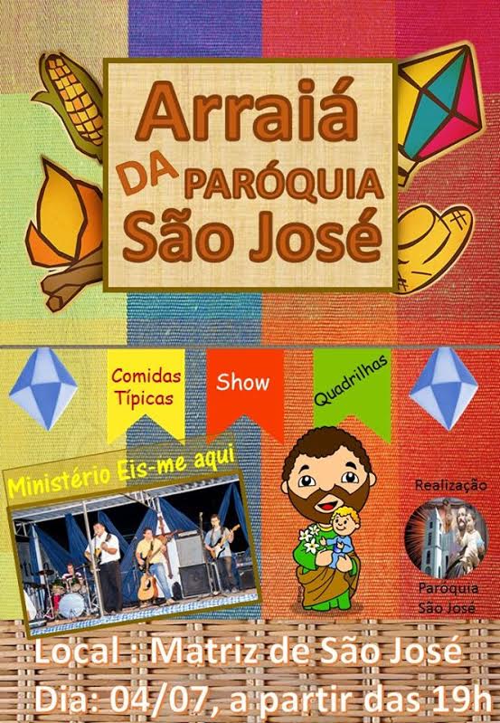 A Paróquia de São José de Cardoso Moreira, apresenta a sua festa julina, no próximo sábado, 4 de julho, no pátio da Igreja à partir das 19h. Com barracas, comidas típicas, quadrilhas e a participação do