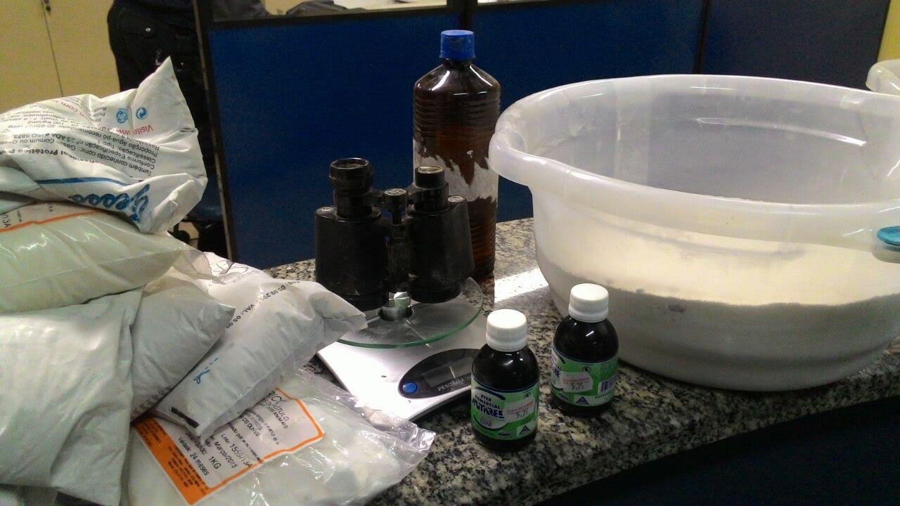 Diga adeus aos tempos bucólicos e calmos do interior. A cena, comum em cidades grandes, foi surpreendente no campo: em vez de uma casinha branca, um quintal e uma janela para ver o sol nascer, um galpão. Com todo o aparato para o refinamento de uma das drogas mais caras do mercado ilícito: a cocaína. Baldes, balança de precisão, equipamentos e materiais utilizados para a fabricação e posterior comercialização de drogas, em um bem montado laboratório, de valor calculado em aproximadamente R$ 700 mil, foi estourado por policiais do 29º BPM -Itaperuna, atuantes na 4ª Cia, em Cardoso Moreira.