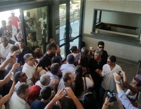 Oração na entrada — Rosinha Garotinho e os filhos Anthony e Wladimir chegaram junto com secretários e aliados para prestar apoio. Após Garotinho subir para sala de audiência, eles fizeram uma oração no hall de entrada do fórum. Após o momento religioso, os apoiadores foram “liberados” para almoçar e a orientação é que eles voltassem às 15h. Rosinha e os filhos também deixaram o prédio.