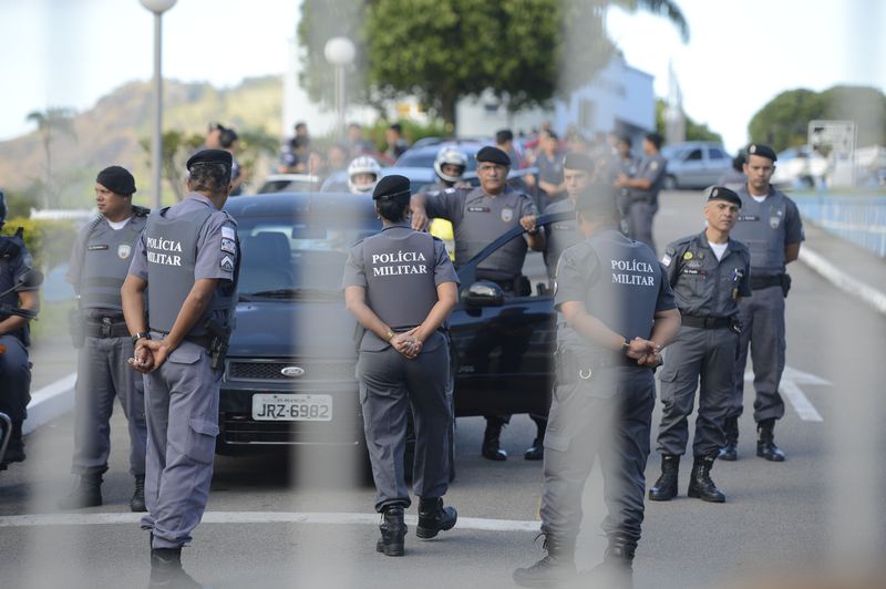 Às 16h, um grupo de PMs se apresentou na Praça Oito, na região central, e outro na rodoviária de Vitória, no bairro Ilha do Príncipe. Alguns estão fazendo o policiamento em viaturas e outros a pé.