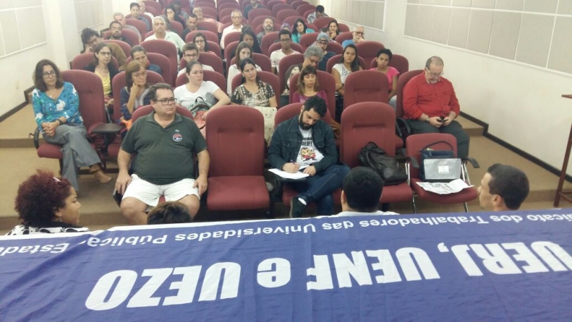 Estudantes de graduação e pós-graduação, docentes e técnicos-administrativos da Universidade Estadual do Norte Fluminense Darcy Ribeiro (Uenf) se reuniram, na manhã desta terça-feira (15), em nova assembleia para discutir a permanência da greve. O encontro aconteceu na sede da instituição de ensino superior um dia após o governo do Estado afirmar que fará o pagamento dos salários de maio, junho e julho até esta terça. E, também nesta manhã, servidores da Faetec participaram de um ato, no Centro da cidade.