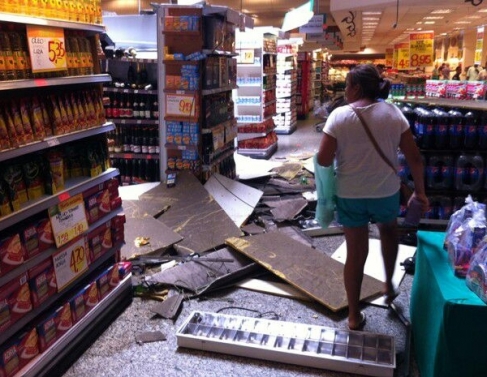 Quatro pessoas ficaram levemente feridas após o teto de um supermercado desabar, na rua Silva Jardim, no Centro de Macaé. O incidente aconteceu por volta das 15h25. Segundo o Corpo de Bombeiros de Casimiro de Abreu, que realizou os primeiros socorros, entre as vítimas havia um bebê de 1 ano.