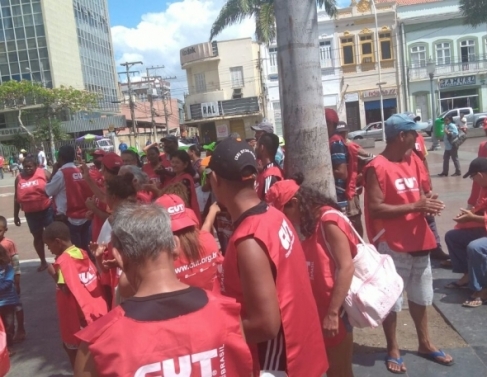 Um grupo de acampados realizou um ato na manhã desta terça-feira (26), na praça do Santíssimo Salvador, no Centro de Campos. Eles aguardavam a sentença da Justiça Federal sobre 11 mil hectares de terra que servirão de assentamento para 1.400 famílias do Acampamento e Pesquisa Margarida Alves, localizado, atualmente, na BR 356, na Aldeia.