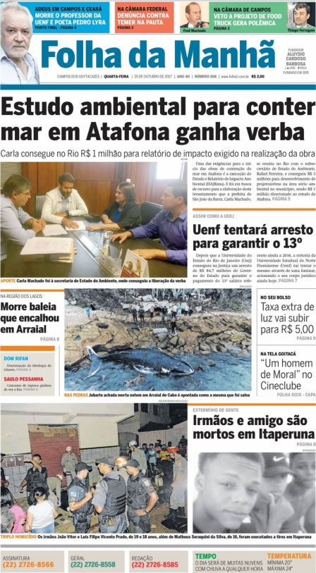 O assunto foi a manchete da edição desta quarta-feira (25) da Folha da Manhã: