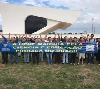 A Uenf, em greve há mais de três meses, foi palco do Supera Rio, nesta sexta-feira (24), evento de resistência em defesa da universidade pública. Com a participação de parlamentares, entre eles o deputado Bruno Dauaire (PR), e entidades representativas das lutas das categorias (técnico-administrativos, docentes e estudantes), além de demais membros da comunidade universitária. Paralelo ao Supera Rio, também aconteceu, na Uenf, a Marcha pela Ciência no Brasil, que fortalece a luta da universidade, defende a união entre cientistas e não cientistas, baseada na diversidade.
