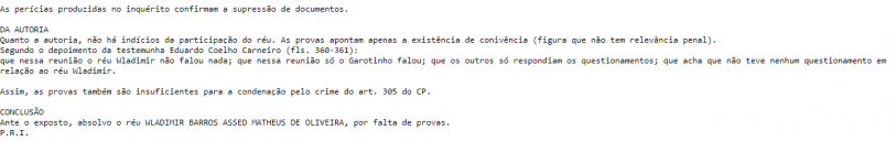 Desta, forma, absolveu Wladimir das acusações por falta de provas.