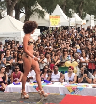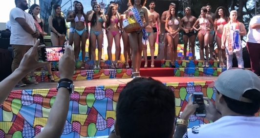 Ao som do Dj Gugu, que animou ainda mais o público presente - que levava faixas de apoio aos concorrentes- o desfile aconteceu com três entradas diferenciada: a primeira foi de apresentação - com todos os candidatos se posicionando juntos no cenário preparado. No segundo momento, a coreografia foi feita em casal, que vestia look casual, e o terceiro momento ficou com a tradicional moda praia, com entradas individuais. As coreografias ficaram a cargo de Pedro Fagundes e a produção e decoração, com Rodolfo Souza.