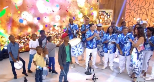 Meninos da comunidade do Morrinho, em Campos, emocionaram público e artistas ao se apresentar no programa Encontro com Fátima Bernardes, da Rede Globo, nesta sexta-feira (9). O convite para fazer a apresentação surgiu após um vídeo em que a bateria mirim aparece tocando o samba-enredo deste ano da escola Beija-Flor viralizar nas redes sociais. No registro, as crianças usam baldes, latas e garrafas pet como instrumentos.