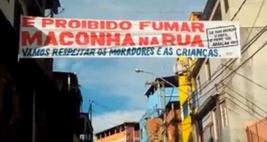 "É proibido fumar maconha na rua. Vamos respeitar os moradores e crianças". A recomendação é de traficantes de Macaé, divulgada por meio de faixas penduradas em ruas da comunidade Morro São Jorge e do bairro Aroeira. Mais que uma orientação, trata-se de uma ameaça, pois há ainda a frase "se não abraçar o papo, o papo vai abraçar você". Fotos e vídeo das faixas viralizaram nas redes sociais desde a última segunda-feira (5) e dividiram a opinião dos internautas. As faixas já foram retiradas.