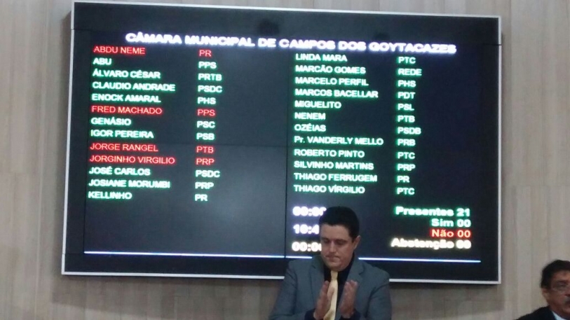 Ausências - Pela manhã, antes da sessão extraordinária, o vereador Fred Machado passou mal em sua residência, com dores no peito, e teve que receber atendimento médico no Prontocardio. O vereador e cardiologista Abdu Neme (PR) o acompanhou na unidade de saúde. Por isso, também se ausentou da sessão. Outro ausente foi Jorginho Virgílio (PRP), que está de licença médica.