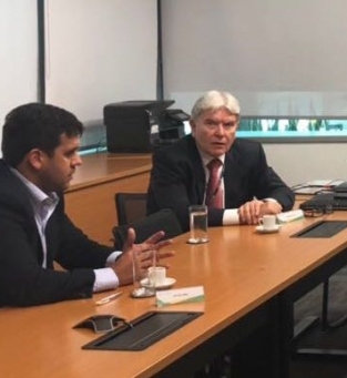 O prefeito de Campos Rafael Diniz, presidente da Organização dos Municípios Produtores de Petróleo e Gás da Bacia de Campos (Ompetro), participou nesta terça-feira (20), a convite da diretoria da Petrobras, de uma reunião, na sede da empresa no Rio de janeiro, para dar prosseguimento ao debate iniciado na semana passada, em Brasília, sobre o Repetro. Participaram do encontro o consultor da presidência, Leandro Alves; o gerente de relacionamento tributário, Cristiano Gadelha, e a assessora da presidência, Luciana Malenha.