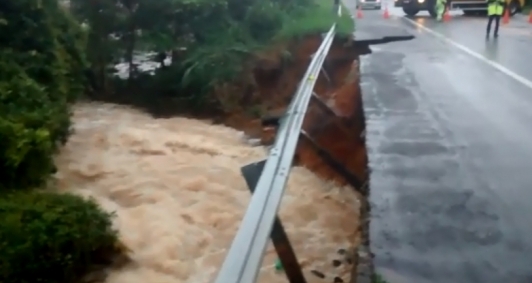 Um morador das proximidades cortou o mato de uma das margens da pista para aumentar a sinalização e permitir que os motoristas notassem o desabamento.