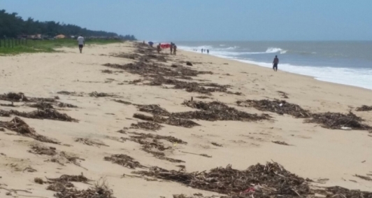 Moradores da praia do Farol de São Thomé, em Campos, estão preocupados com a orla que foi invadida por lixo que veio do mar. O volume de folhas secas e galhos espalhados pela areia espanta moradores e comerciantes. Eles alegam que foi causado pelas últimas chuvas e pelas fortes ondas.