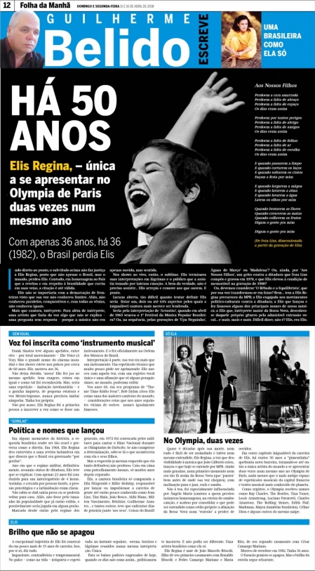 Em outro capítulo inigualável da carreira de Elis, há exatos 50 anos a “pimentinha” quebraria nova barreira, tornando-se até então a única artista do mundo a se apresentar duas vezes num mesmo ano no Olympia de Paris, nada menos que o mais antigo espaço de espetáculos musicais da capital francesa e teatro musical mais conhecido do planeta.