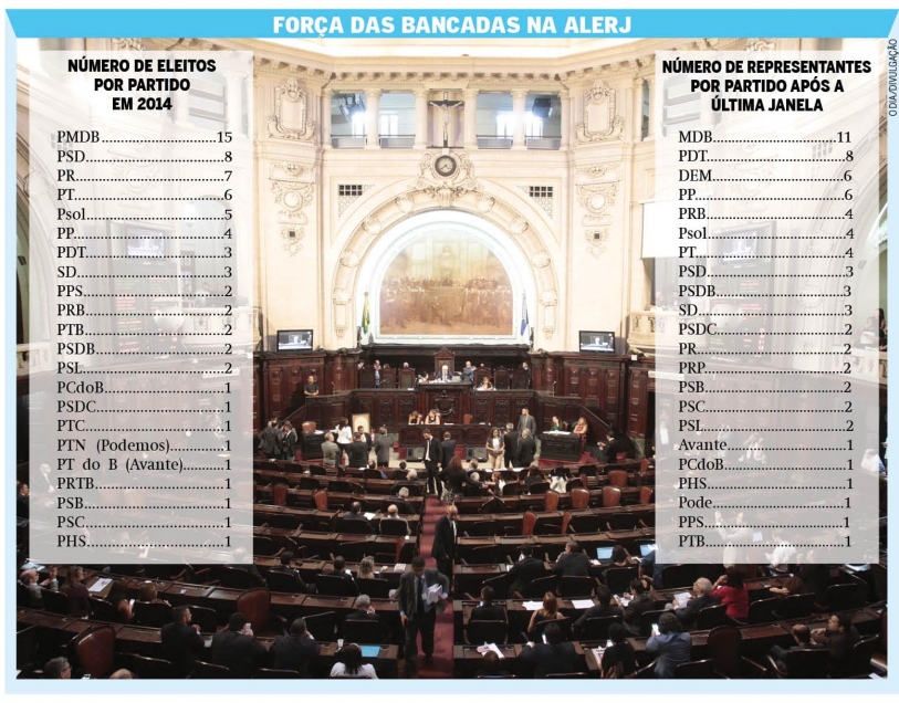 O fim da janela partidária evidenciou um dos impactos da Lava Jato no Rio de Janeiro. Em meio a tantas denúncias envolvendo o ex-governador Sérgio Cabral, seu partido, uma espécie de fortaleza fluminense, foi o que mais perdeu representantes na Assembleia Legislativa do Estado do Rio de Janeiro (Alerj) e entre os parlamentares do Rio na Câmara dos Deputados. O agora MDB, que aposentou o P de outrora, continua sendo forte na Alerj, tem a maior bancada, mas perdeu praticamente 1/3 dos seus representantes, comparando ao número de eleitos em 2014. No parlamento federal, dos oito que tomaram posse pelo PMDB fluminense, hoje restam apenas três no MDB. Entre os da região, a única mudança na última janela da Alerj foi a do deputado estadual Bruno Dauaire, que saiu do PR para o PRP. Na Câmara, Clarissa Garotinho saiu do PRB e foi para o Pros.