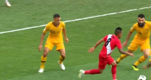 O jogo entre a Austrália e o Peru pelo Grupo C, em Sochi, foi marcado no primeiro tempo com os dois times buscando o ataque. Os australianos, precisando da vitória para pensar em classificação, pois dependia que a França derrotasse a Dinamarca, em Moscou, partiu para cima da equipe peruana.