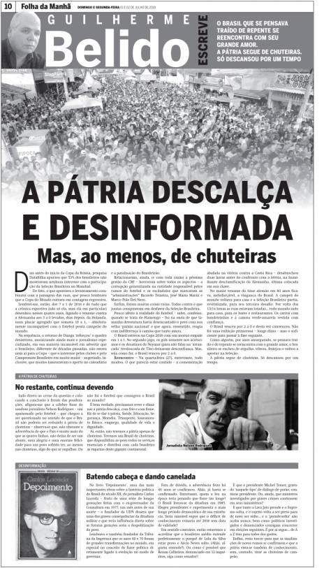Enfim, resta torcer para que as sinalizações de novos rumos se confirmem e que a pátria vista-se também de conhecimento, sem, contudo, tirar as chuteiras de campeão.