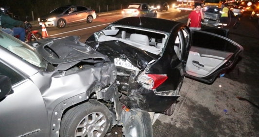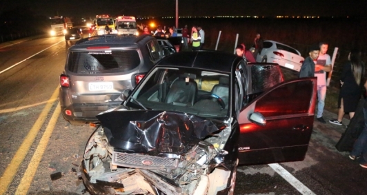 Os veículos envolvidos na colisão foram um Ettios, de cor prata, com placa de Maricá, no Rio de Janeiro, um Corola, de cor prata, também de Maricá, um i30, de cor prata, com placa de Eunápolis, na Bahia, um Jeep Sports, de cor cinza, com placa de Itaperuna, um Corsa, de cor prata, com placa do Espírito Santo, um Honda Civic, de cor preta, com placa de Campos e um Fiesta, de cor preta, com placa de Macaé.