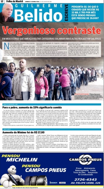 No fim das contas, a situação é tão injusta quanto desproporcional. Vejamos: o servidor que ganha entre R$ 1.500 e R$ 2.000, seja municipal, estadual ou federal, se tivesse aumento de 15% (e a maioria está há anos sem reajuste), passaria a receber de R$ 225 a 300 a mais. Ou seja: os poucos reais de reajuste serviriam para o chefe de família completar a conta do supermercado que não está dando, para comprar carne mais duas ou três vezes por mês ou, quem sabe, assumir uma prestação para trocar os pneus ‘carecas’ do carro velho.