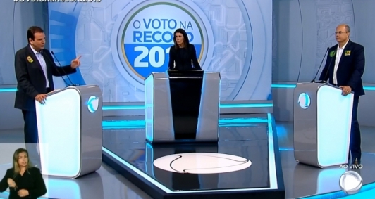 Quando o tema sorteado foi “legado de Cabral e Pezão”, o ex-juiz federal partiu para o ataque contra Paes. “Você comeu na mesa do Cabral, dividiu guardanapo com ele. Emprega os filhos do (Jorge) Picciani, conhece bem a rotina dessas famílias. Você está acostumado a ludibriar as pessoas. Está cercado de pessoas que entregaram o estado à corrupção. Vai dar secretaria pro Picciani? Para o filho do Cabral?”.