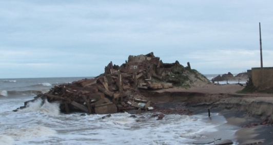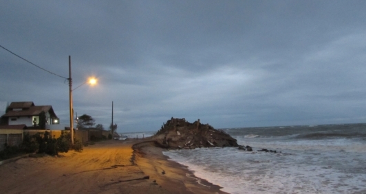 Nos últimos dias o mar voltou a avançar no trecho entre a foz do Paraíba do Sul e as imediações da antiga caixa d’água — que foi demolida antes de ser levada pelas ondas. Perto dos escombros do prédio do Julinho dá para ter noção do quanto o oceano avançou sobre o continente. Em um vídeo que ganhou as redes sociais na última semana, o morador de Atafona Rodrigo Queiroz mostra como as ruínas do prédio funcionam como um pequeno “quebra-mar”. Derrubado pelo mar há mais de 10 anos, ainda protege as casas vizinhas. “Se tivesse um quebra-mar, uns 100 ou 200 metros para dentro do mar, não aconteceria mais isso. A gente vê isso em Marataízes”, afirmou Queiroz no vídeo gravado na terça-feira, falando ainda sobre uma “ressaca fora de época”.