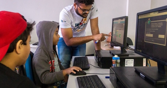Tudo o que Philipe Combat Costa, 7 anos, e Naiara da Silva, 8, querem é aprender a programar jogos no estilo Robox, que exigem raciocínio para planejar os movimentos. É assim que eles vão passar as duas últimas semanas das férias escolares junto com mais 148 crianças, de 6 a 10 anos, inscritos na II Escola de Verão de Programação, da Universidade Federal do Rio de Janeiro (UFRJ), no campus Macaé. Os alunos do projeto aprendem brincando no Laboratório de Informática da Graduação (LIG), na Cidade Universitária. As aulas foram abertas nessa terça-feira (15) e prendem a atenção da garotada.