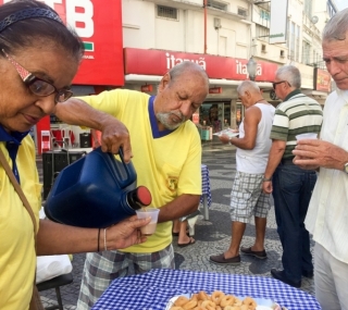 Para celebrar o Dia Nacional do Aposentado, a Associação Campista de Aposentados e Pensionistas (Ascapen) realizou na manhã desta quinta-feira (24), um café da manhã comunitário ao ar livre para os idosos no calçadão, ao lado da Catedral Santíssimo Salvador, no Centro. A ação contou também com aferição de pressão arterial em parceria com a equipe de enfermagem da superintendência do Envelhecimento Saudável e Ativo (Sesa).