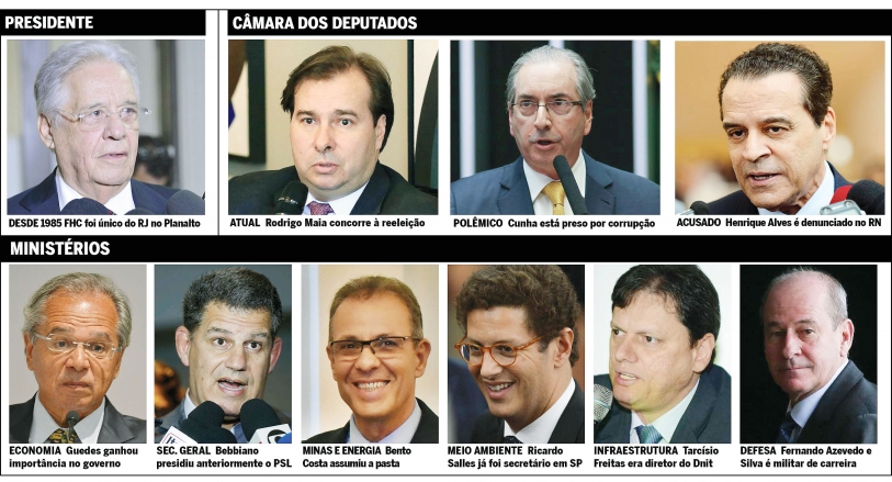 Seis ministros nomeados por Bolsonaro são naturais da cidade do Rio de Janeiro, incluindo Paulo Guedes, responsável pela “super pasta” da Economia e considerado como “Posto Ipiranga” do presidente durante a campanha. Além disso, outro nome de confiança do capitão da reserva é o campista Felício Laterça (PSL). Eleito deputado federal, o ex-delegado da Polícia Federal em Macaé é o líder da bancada de 12 parlamentares eleitos pelo partido no Rio e participou do gabinete de transição de governo.